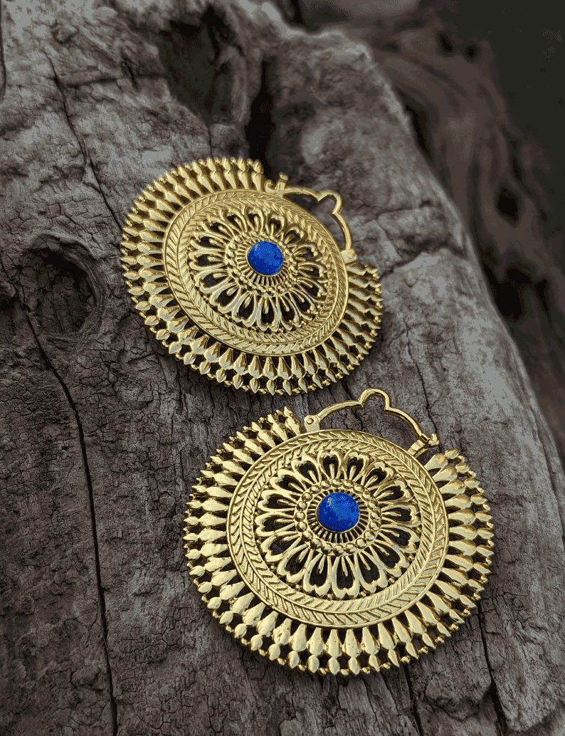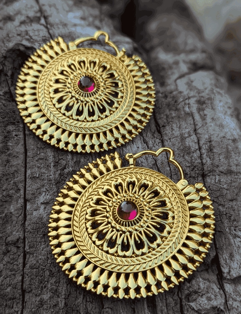 Für gestreckte Ohren mit Edelsteinkern und Goldpolitur.