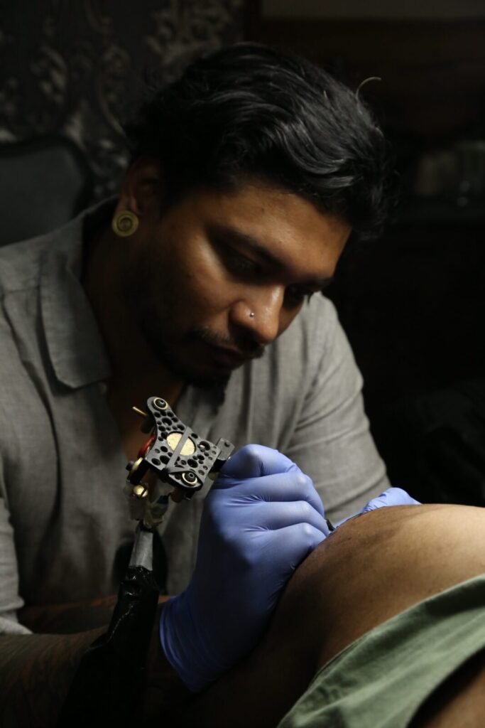 Bekannt für seine Vielseitigkeit, brilliert OBI in verschiedenen Stilen, insbesondere bei Mandalas und seinem charakteristischen Bongostyle. Als “Allrounder” ist jedoch kein Motiv für ihn unmöglich. Seine Genauigkeit, Leidenschaft und sein unermüdliches Streben nach Perfektion zeigen sich in jedem seiner Entwürfe. Während sich das Tätowieren in Indien von einer Untergrund-Bewegung zur Mainstream-Kultur entwickelt hat, bewahrt OBI einen tiefen Respekt für die Wurzeln dieser Kunst. Er widmet sich der Erschaffung bedeutungsvoller, kulturell resonanter Tattoos, die sowohl sein Erbe als auch die Visionen seiner Kunden widerspiegeln.